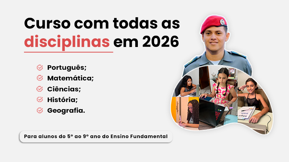 Revise tudo para os seletivos dos Colégios Militares em 2026 em um só dia! Aulão completo de Português e Matemática com materiais em PDF, simulado comentado e anotações. Garanta sua vaga e chegue preparado para a prova!